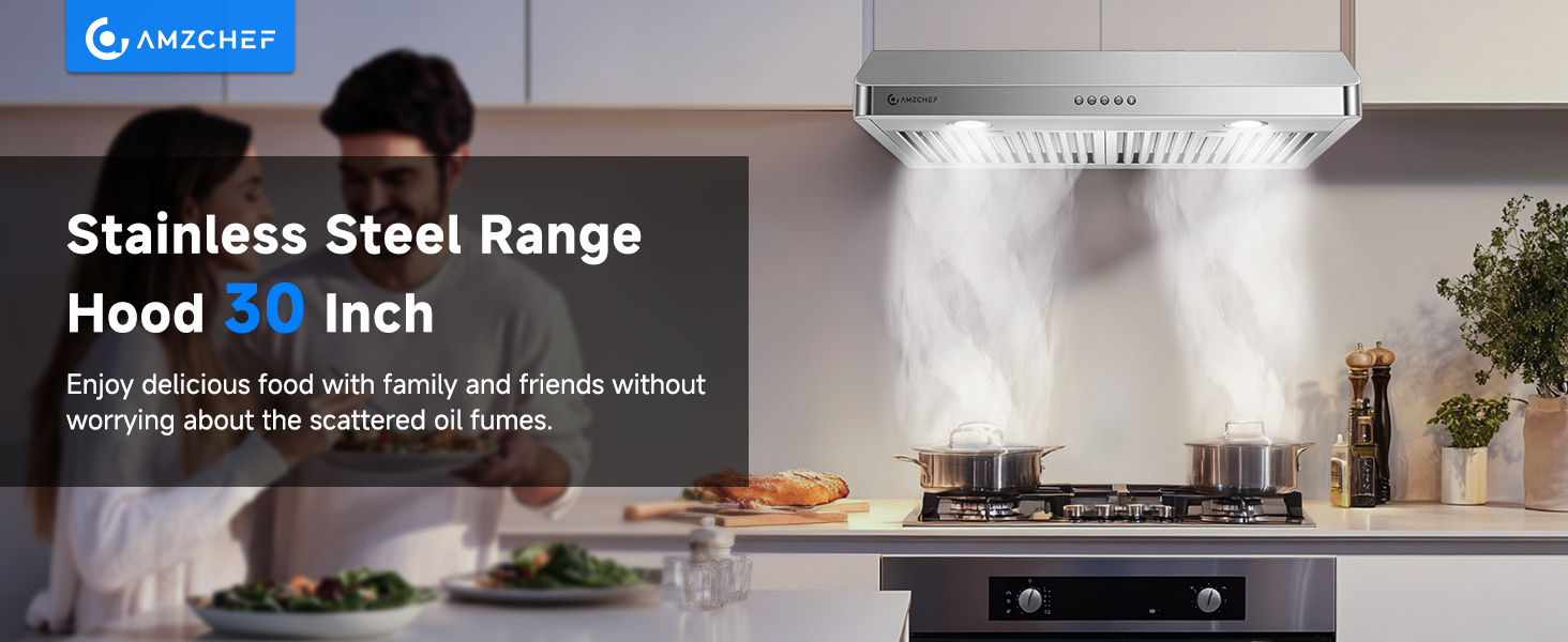 AMZCHEF 30 Inch Range Hood | هود زیر کابینتی استیل با مکش 750 CFM