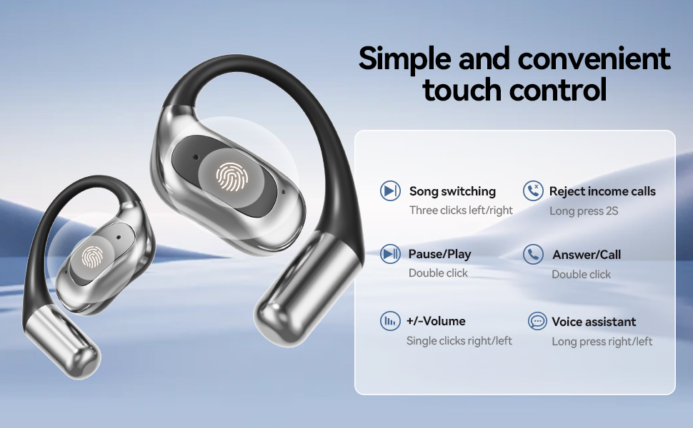 کنترل لمسی هوشمند به شما اجازه میدهد تماسها را پاسخ دهید یا قطع کنید، موسیقی را پخش یا متوقف کنید و همه این کارها را بدون بیرون آوردن گوشی انجام دهید. این ویژگی، استفاده از هدفون اوپن ایر بلوتوثی را ساده و لذتبخش میکند.